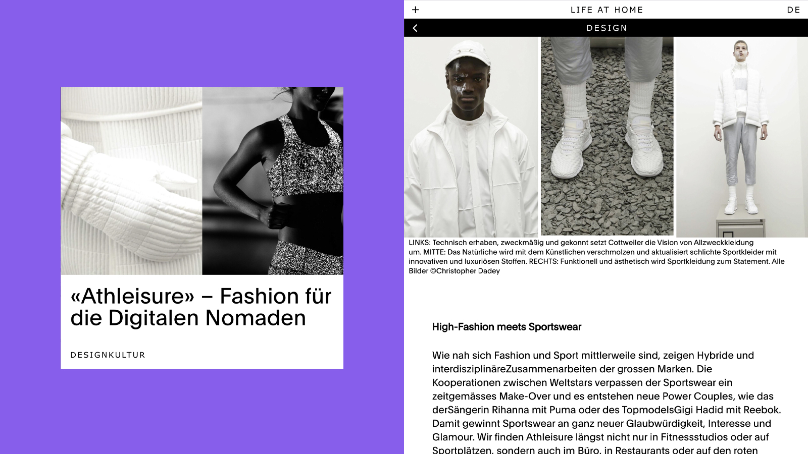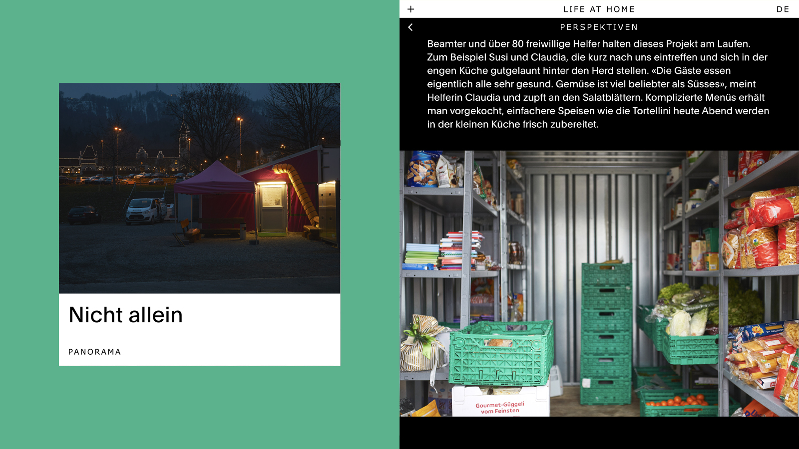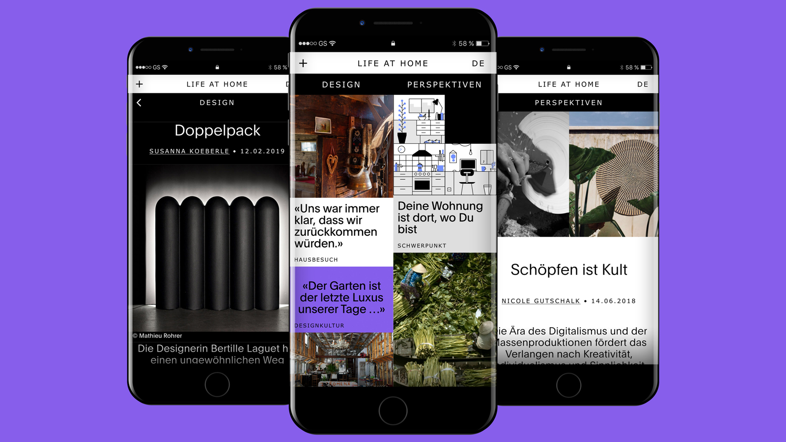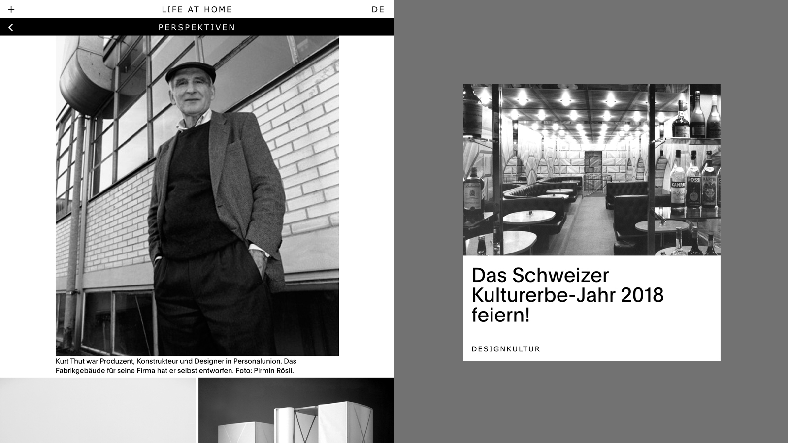 Das Digitalmagazin lifeathome.ch widmete sich der Wohnkultur: Vielfältig, authentisch und individuell. Es bot der urbanen Leserschaft ein Panorama an Reportagen und kritische Analysen zum «Leben zuhause». Unabhängige Autoren*innen reflektierten Wohnen als tiefgründiges und mehrdimensionales Thema – weit über Hochglanzfotos, Möblierungskonzepte, Trends oder neue Produkte hinaus. Zwei Rubriken, «Design» und «Perspektiven», setzten klare Themenschwerpunkte. Das von der Zürcher Grafikagentur Raffinerie AG gestaltete Magazin gewann mehrere Awards, darunter Silber in der Kategorie «Creation» bei «best of swiss web» 2019.